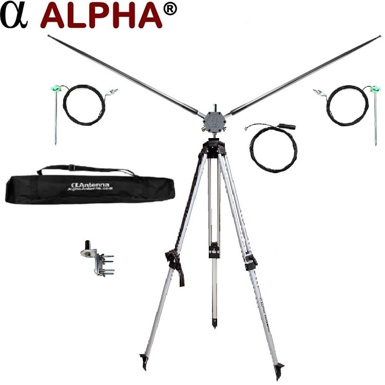 - 2 – 5.41 meter (17′ 9″) telescopic stainless-steel whips (with “Alpha Antenna” laser engraved)
