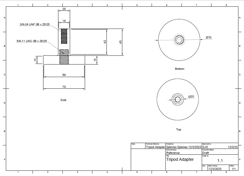 This is an adapter that enables hardware with a 3/8” x 24 male to be installed on a surveyor tripod, which have an industry standard male 5/8″ x 11 tpi thread count adapter already installed.